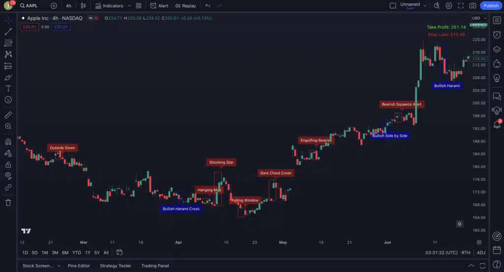 Every detected pattern is clearly plotted on your chart with easy-to-read labels. No more squinting at candles trying to figure out if that’s really a Hammer or just a long-wicked candle.