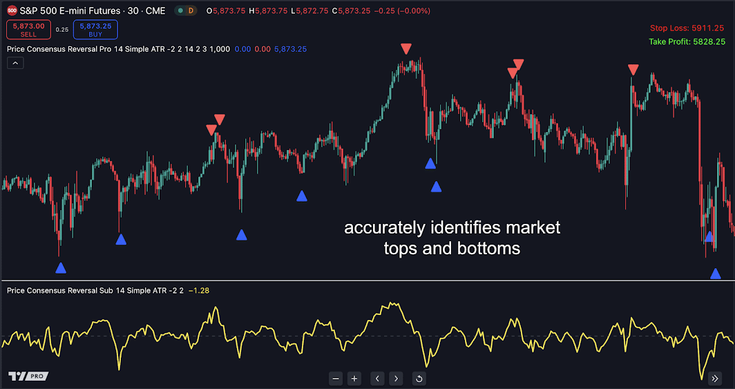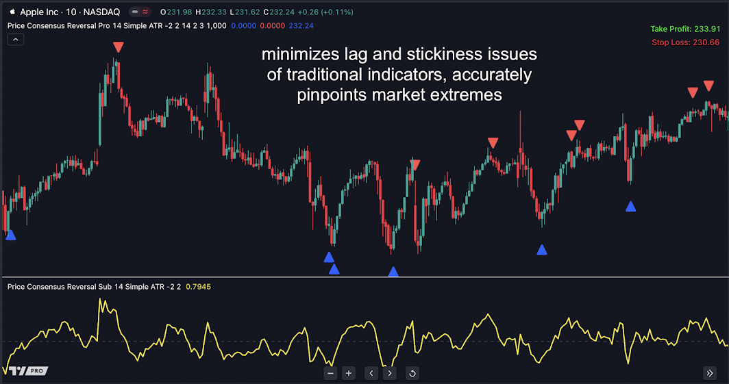Flawlessly time your entries with new Volatility-Adaptive algorithm inside the Price Consensus Reversal indicator for Tradingview.