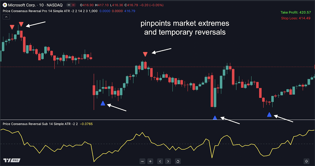 The all-new Price Consensus Reversal indicator uses a new statistical approach that: