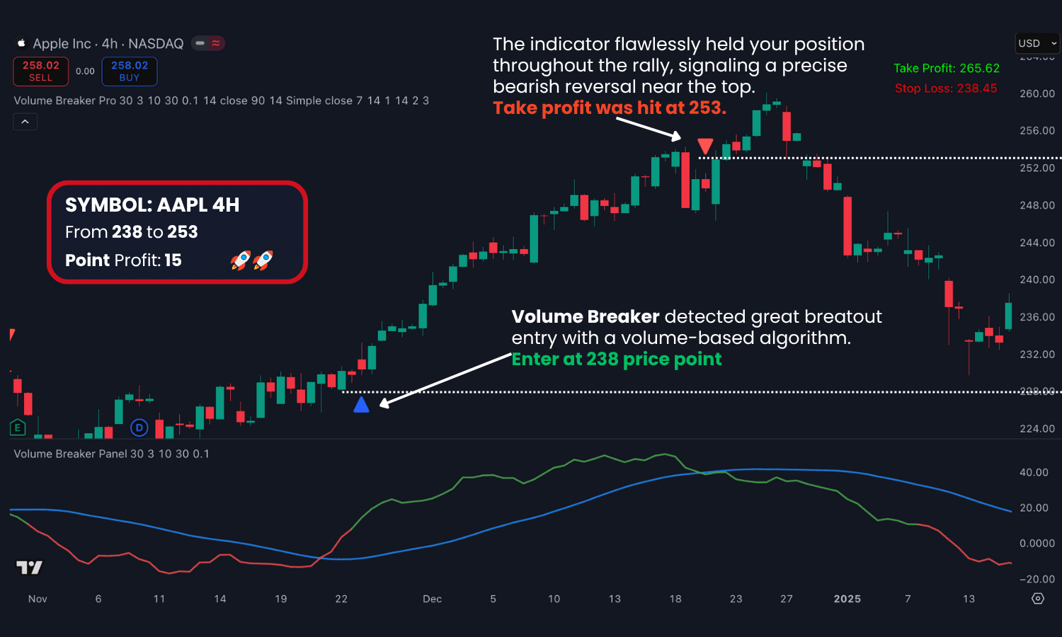Tired of entering just as institutions are exiting? Volume Breaker detects institutional volume buildup before the move happens, so you can enter earlier and avoid false breakouts.